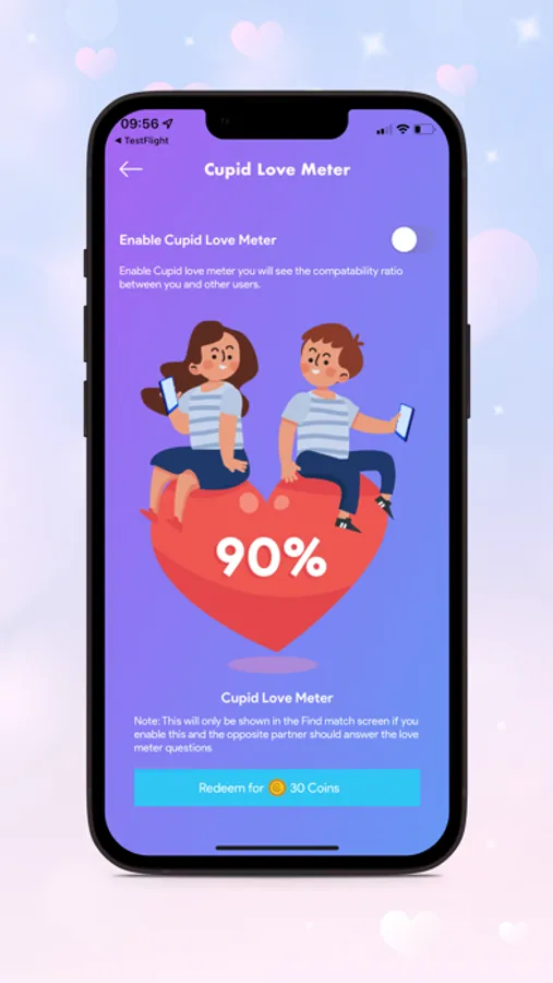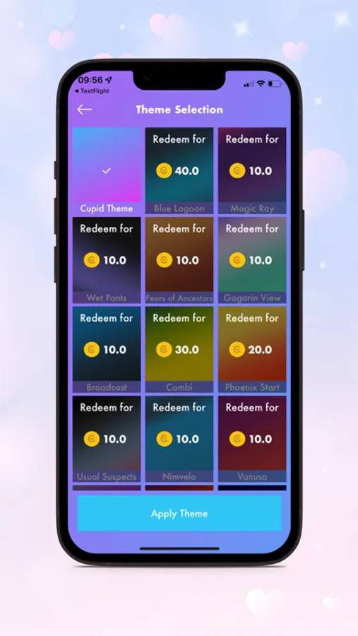 Cupid Coins are those special reward points that the user is rewarded with on choosing to watch small advertisements. The Cupid Coins can then be used to purchase many more different themes or even to unlock various other features in the Cupids Quest Application.