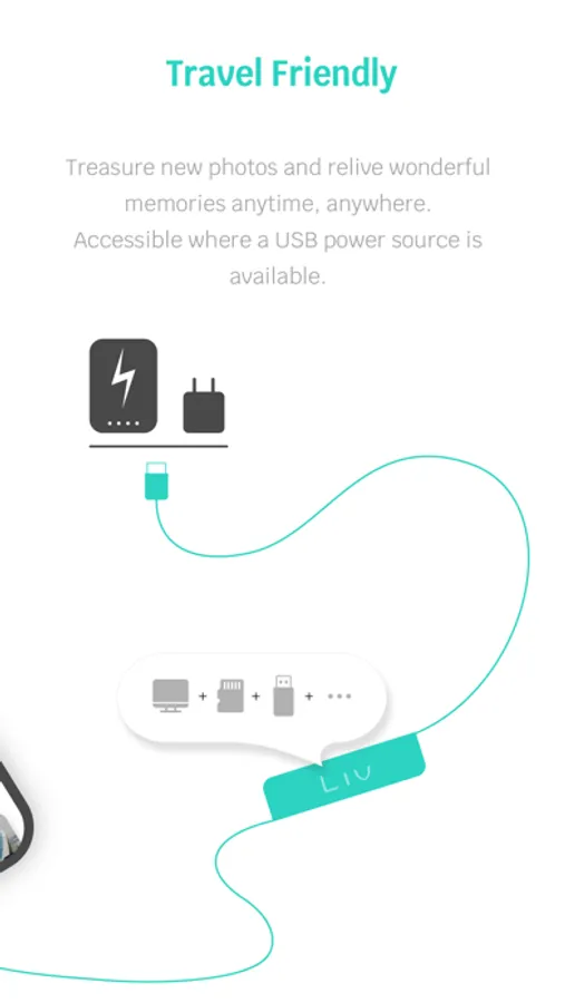 + Accessible anywhere a USB power source is available -- Automatic backup and organization starts after plug LivCore into an iPhone and power source