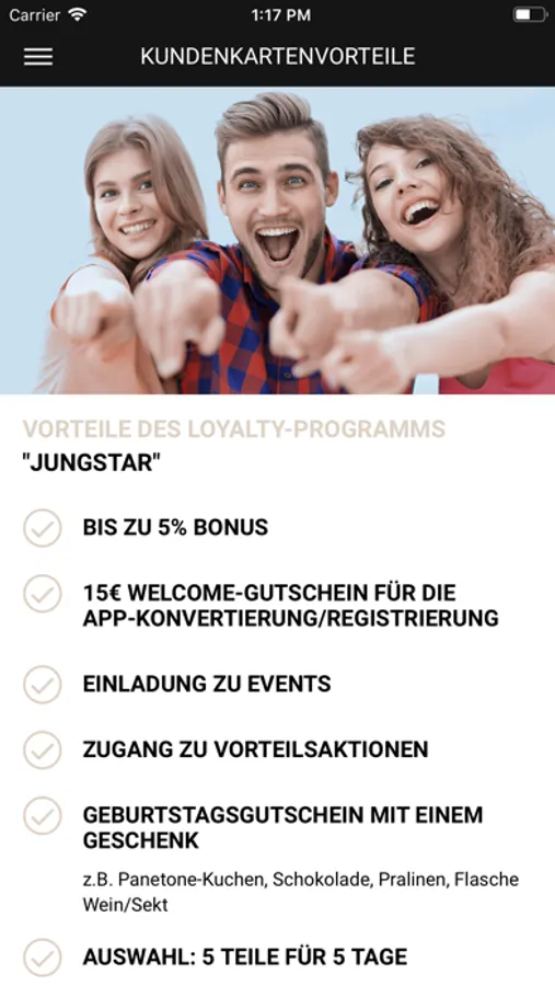 Bling! Bling! Wir schicken Ihnen Ihre persönlichen Vorteile direkt per Push-Nachricht, wie z,B. Ihren Bonus-Scheck und viele weitere tolle Gutscheine für €-Coupons, Rabatte, Einkaufsvorteile, Give-aways und kleine Geschenke. Ihre Gutscheine können Sie direkt über die App in unserem Haus in Augsburg einlösen.