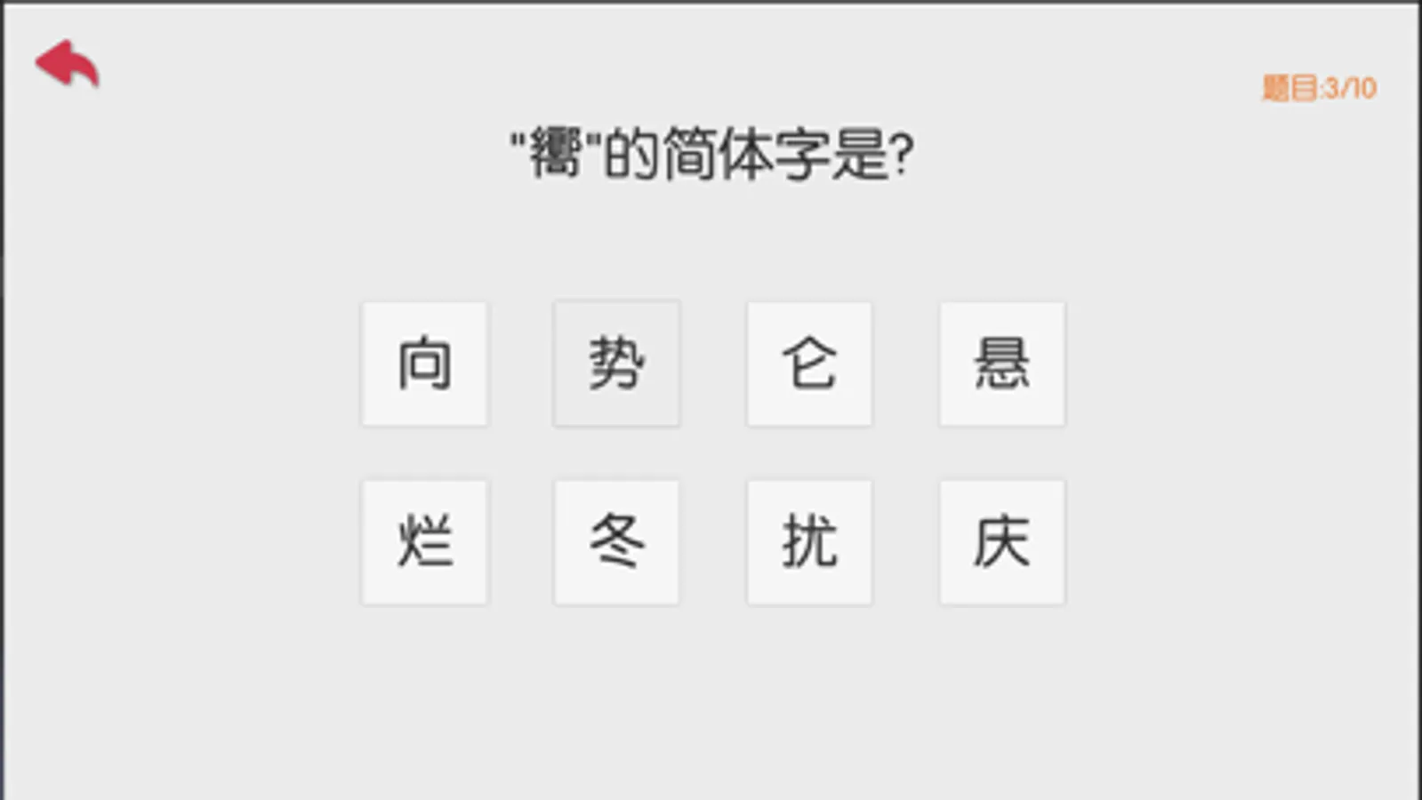 挑战繁简字:你需要正确回答题目所对应的繁体或简体字,最后的得分会根据用时和正确率进行计算。