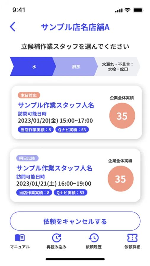 わずか数タップで作業員を手配できるアプリケーションです。