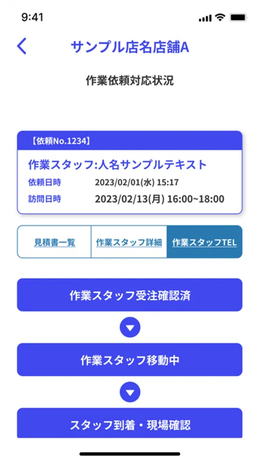 複数の管理者、店舗との共有可能!リアルタイムで依頼状況を確認することができます。