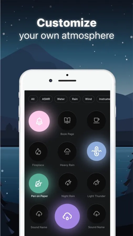With Taozen, not only can you edit our scenes as much as you like, but we also give you access to dozens of handpicked and varied sounds to compose your own scene. Create the sound of your dreams and plunge into a very much deserved relaxing moment !