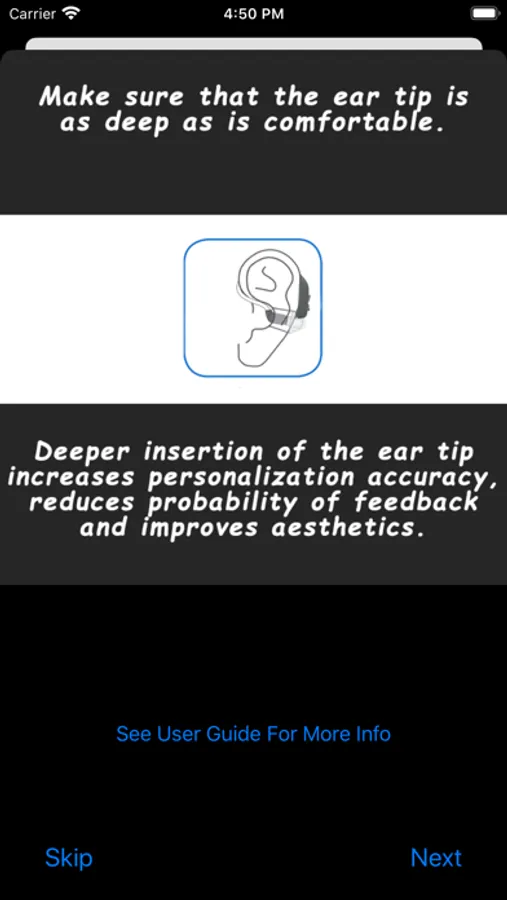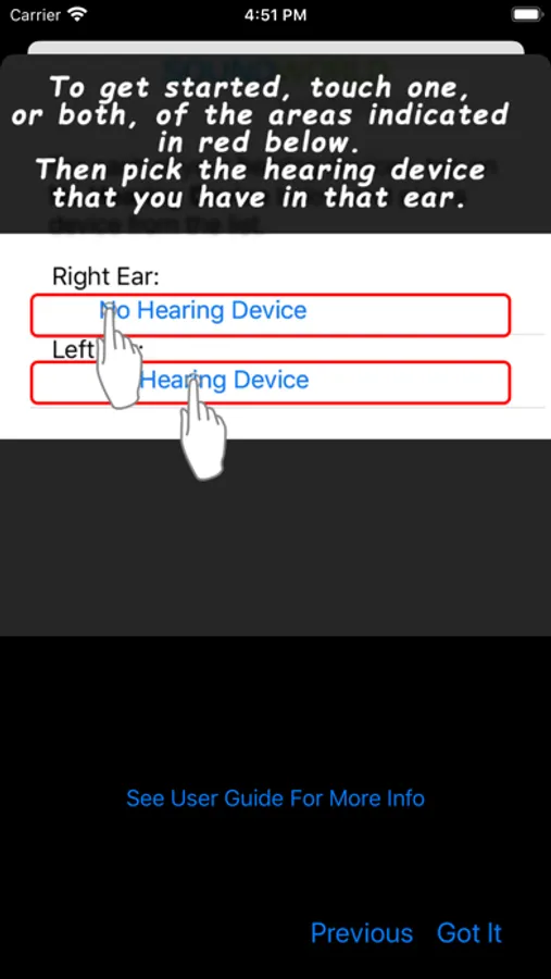 During the first run of the app, an automated program will walk you through the steps in tailoring the performance of the listening device to your individual preferences.