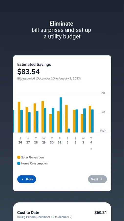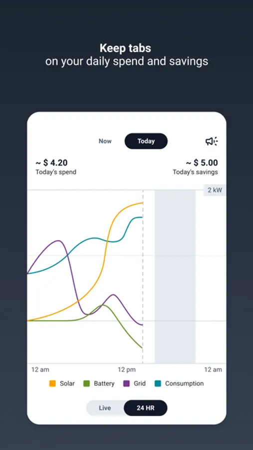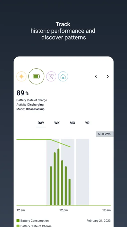 • Discover patterns in your consumption, solar generation, grid, and battery usage