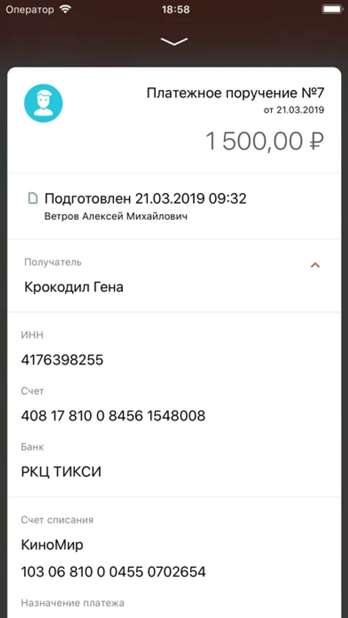 • Совершайте переводы в валюте РФ между своими счетами и на счета контрагентов внутри Банка;