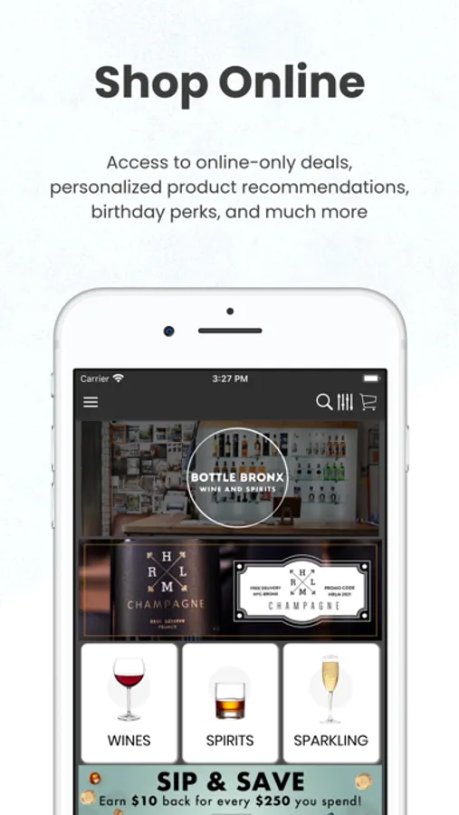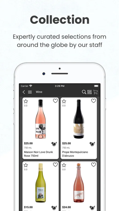With the App you can browse for the wines & spirits available in the store, and also order a delivery or pickup.