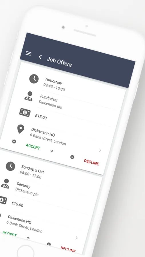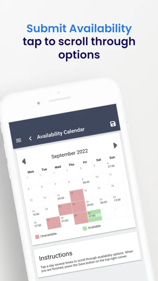 The app allows you to view your upcoming jobs, manage your availability, sign in and out, fill timesheets and forms, and accept open shifts where you have been selected as a candidate.