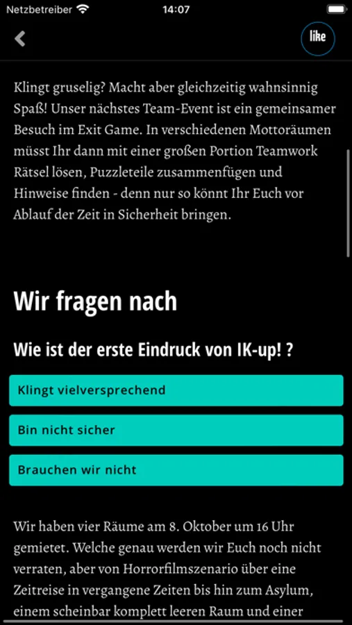 IK-up! is an employee app which creates more reach and impact in your company. IK-up! is easy to use and interactive, as internal communication should not go just one way. With IK-up! employees can engage more easily by providing ideas, topics or questions.