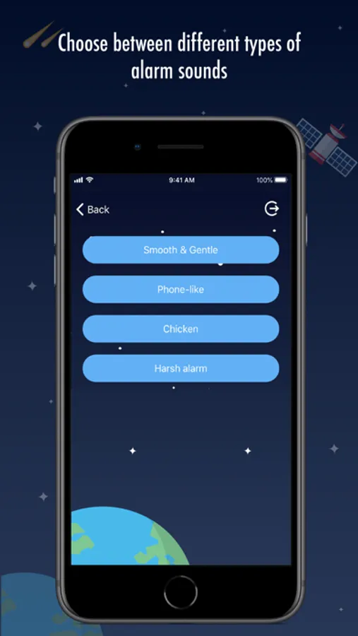 - Choose from multiple alarm sounds