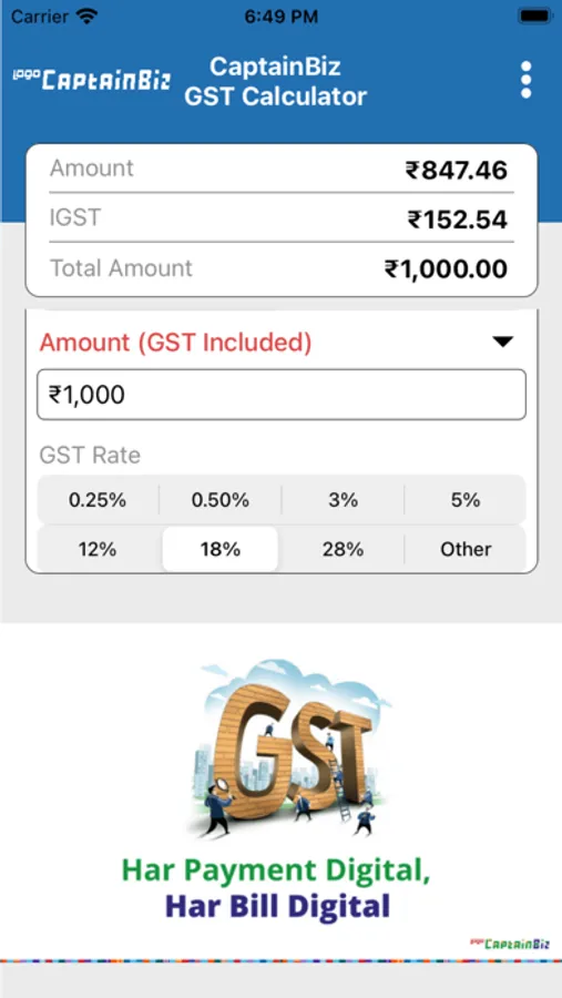 "Logo GST Calculator" app will help you to estimate total cost of your products/services including their IGST (Integrated GST tax), CGST (Central GST tax), SGST (State GST tax) amounts without adding any formula. You can use both the predefined tax slabs (0%, 0.25%, 0.5%, 3%, 5%, 12%, 18%, 28%) or set different rate. IGST, CGST, SGST tax amounts will be calculated according to the transaction type (inter-state or intra-state). Tax amounts can be estimated based on GST inclusive and GST exclusive amounts.