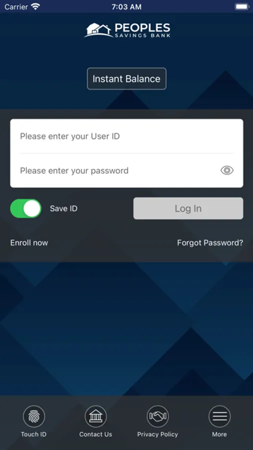 *To use the PSB Mobile Connect app, you must be a Peoples Savings Bank online banking user. Input your Peoples Savings Bank online banking Username and Password to log into the PSB Mobile Connect app. If you have not setup a Username and Password, visit www.bankpsb.com and select “Enroll Now.”