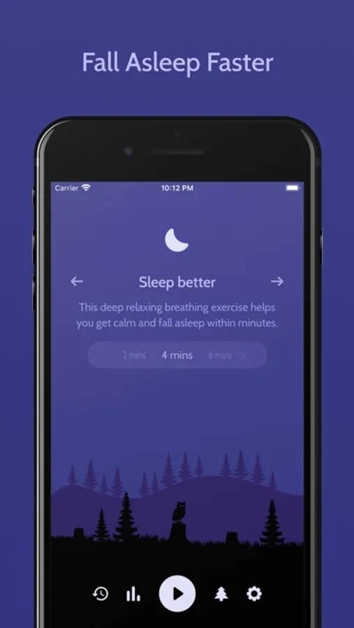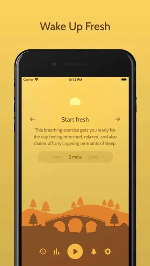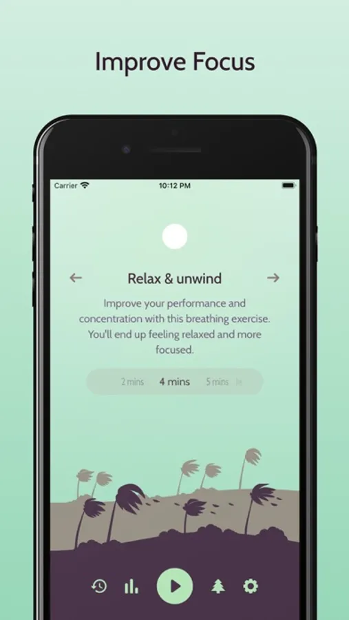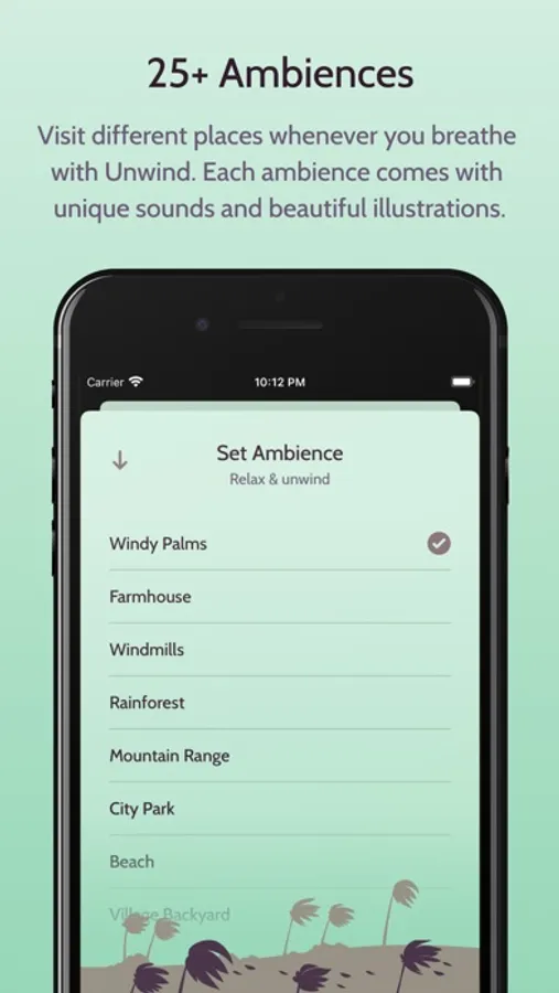 After you begin a session, Unwind breathes with you by animating the background scenes to help you stay mindful and in sync.