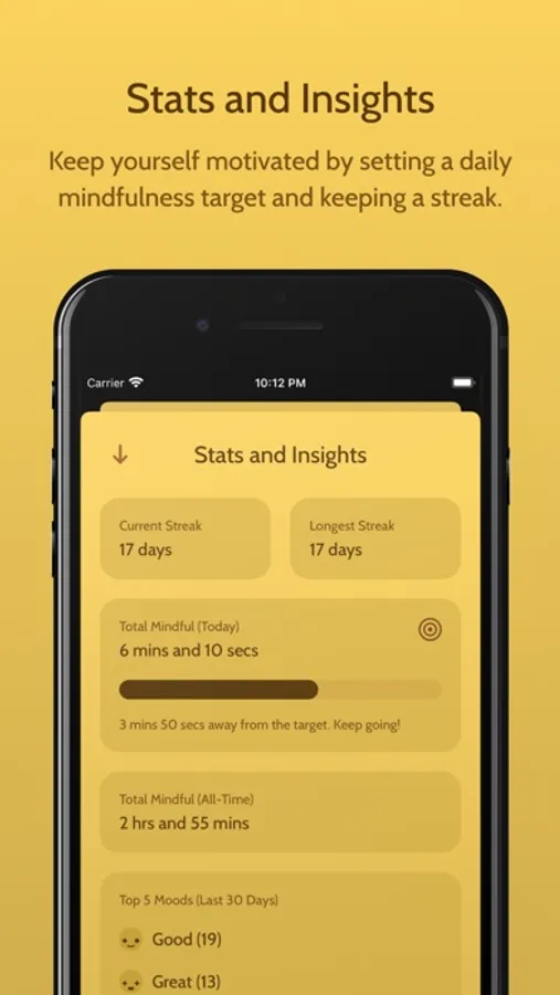 Find it hard to stay motivated? Track your mindfulness journey and set daily targets and build streaks to make sure you stay motivated and spend some time daily to be mindful.