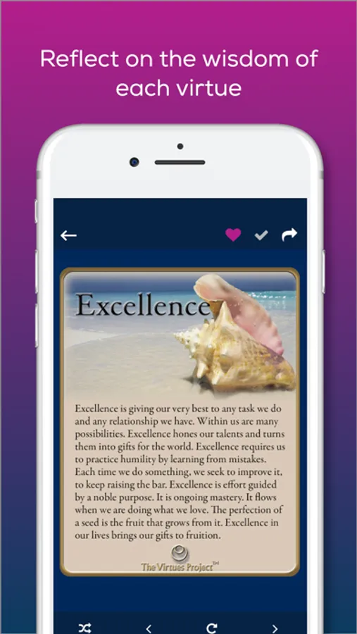Set a daily reminder to do a Virtues Pick and see how integrating the virtues into your daily routine begins to change your life and the lives of those around you. Parents can use the app to raise children of compassion and integrity. Educators can reference the app to create safe and caring spaces for learning. Civic and business leaders can apply virtues to encourage excellence, ethical conduct, and a culture of recognition and gratitude in the workplace.