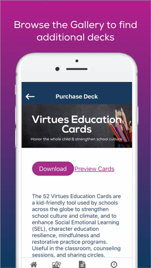 Navigate Gallery to easily view and purchase different decks