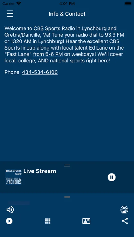 Welcome to CBS Sports Radio in Lynchburg and Gretna/Danville, VA! Listen to great shows right here like The DA Show, Jim Rome, and even local talent on The Fast Lane with Ed Lane from 5-6 PM M-F! Plus local sports like high school football as well as coverage of the NFL, College Football, March Madness and more! Tune your dial to 93.3 FM & 1320 AM in Lynchburg or 730 AM in Gretna/Danville for the best sports coverage in Central, Southwest, and Southside Virginia!