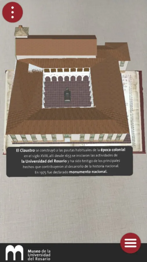 Descargando esta aplicación y enfocando el logo de la Universidad del Rosario vas a poder disfrutar del patrimonio cultural del Rosario por medio de la Realidad Virtual. El Museo de la Universidad del Rosario difunde el conocimiento sobre la memoria y el patrimonio cultural del Rosario tanto dentro como fuera de los muros del Claustro, promueve la participación y el fortalecimiento de su comunidad académica y estudiantil.