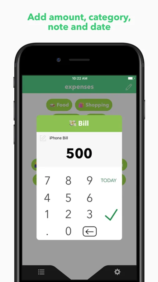 Optionally, you may add a note or change date (current date is today by default). Off course the categories are editable: add, edit, rearrange the list as you wish.