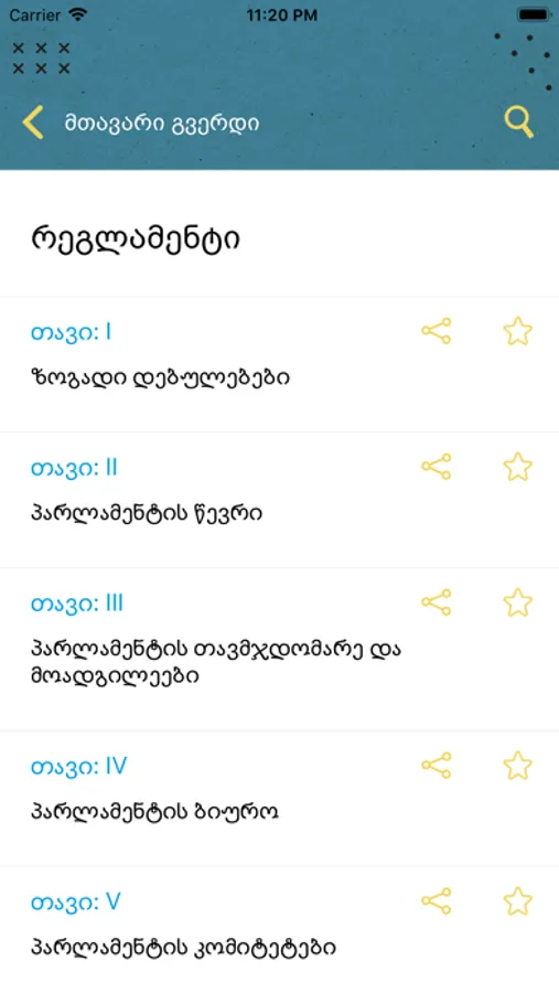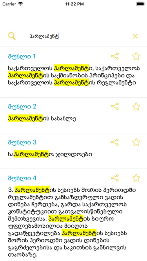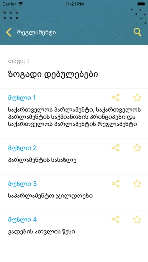 Rules of Procedure of Georgian Parliament is a set of rules that ensures compliance of parliamentary activity with the new amendments of the Constitution of Georgia, strengthens the Parliament, creates new leverage for government control, improves the legislative process and raises MPs accountability and the role of citizens in parliamentary activity. This App helps you to easily navigate through the document, find any Article, word or a sentence and thus improve your working or research process.