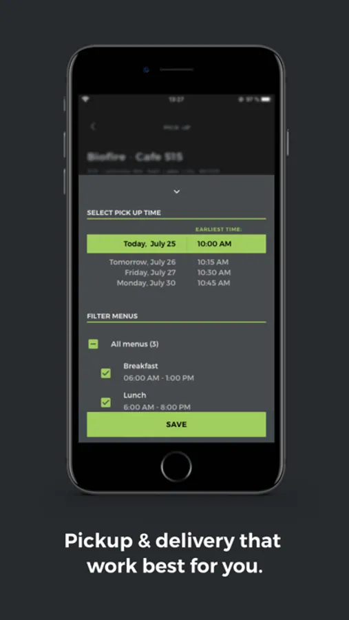 Order café items online, pay instantly, and choose a pickup time using your smartphone.