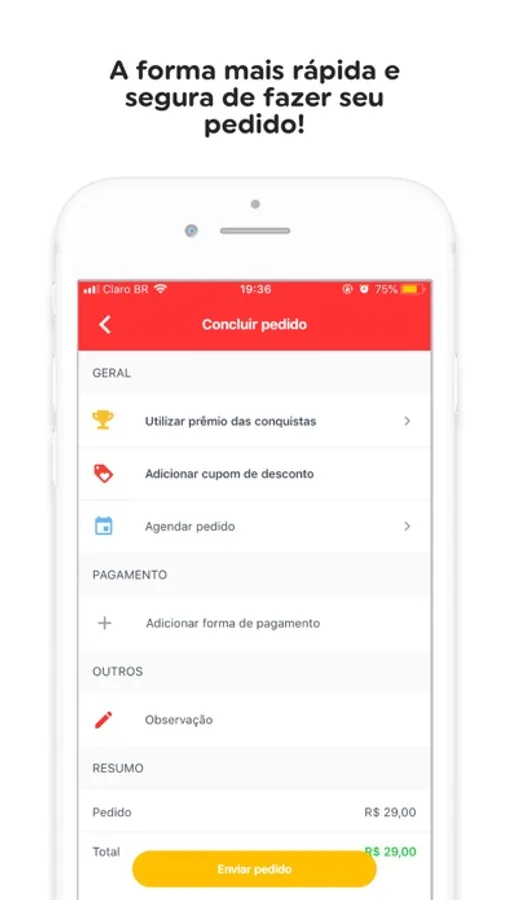Para nos ajudar a melhorar cada vez mais a sua experiência, você também pode avaliar cada pedido e dar sugestões diretamente no aplicativo.