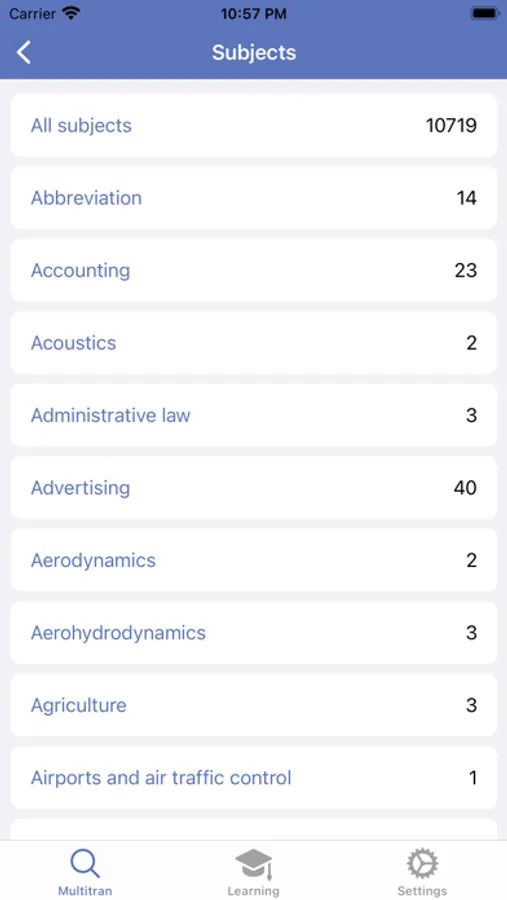 Multitran dictionary translates words and phrases. Translations are sorted by speech parts and subject areas. There are over one thousand subject areas in the dictionary. It is also possible to view phrases that contain the current search word. Phrases are grouped by subject areas. Dictionary entries may contain comments. Some translations were added by users.
