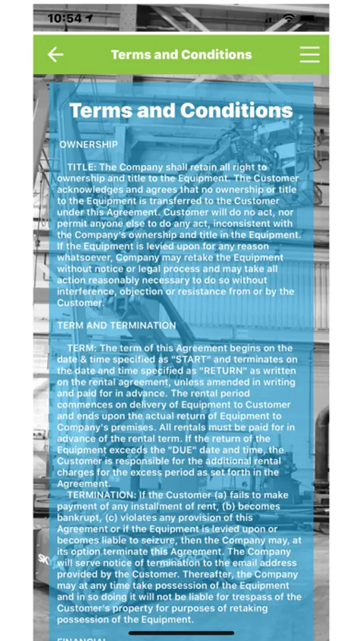 This app is for delivery drivers at therentalguys.ca , to see all deliveries and pickups , take equipment pictures and sign off contract from the customer.