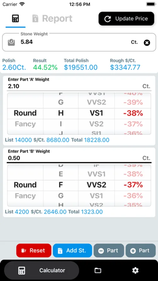 + Estimates transactions and generates a comprehensive report for each stone/parcel