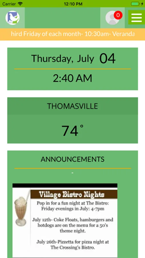 Piedmont Crossing resident engagement portal mobile application that has user functionality to make dining reservations, digitally submit forms, view community documents, view resident and staff directories, and engage with other residents of your community.