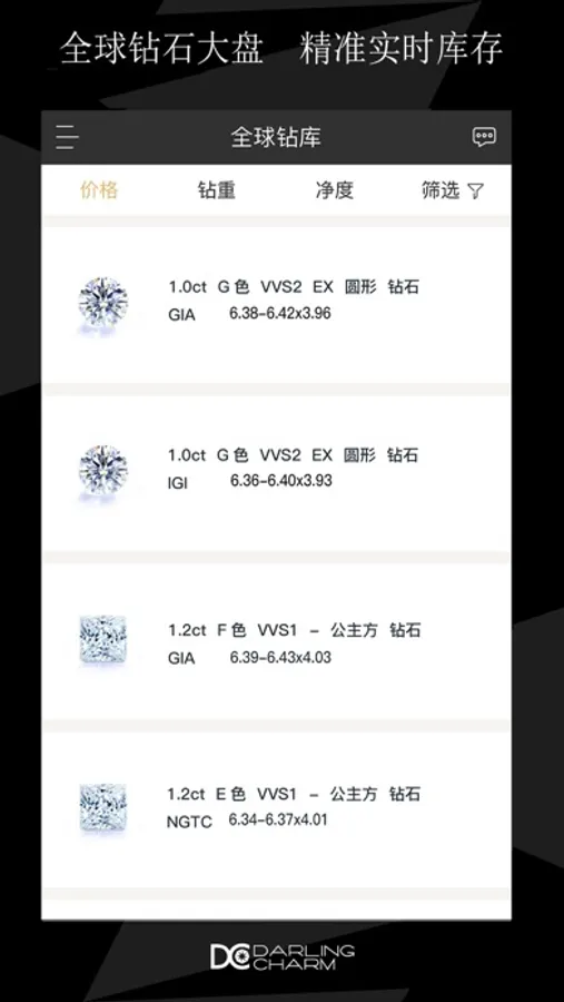 钻石查询:对接国内外一手钻石供应商,裸石数据实时更新;