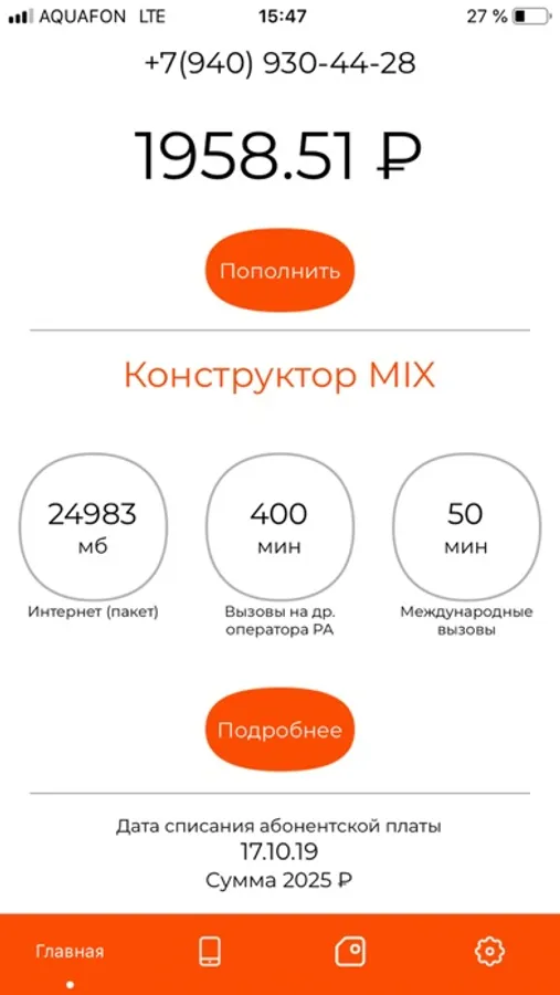 В нашем приложении в один клик ты можешь легко проверить и пополнить баланс, изменить свой тариф и подключить дополнительные опции и услуги.