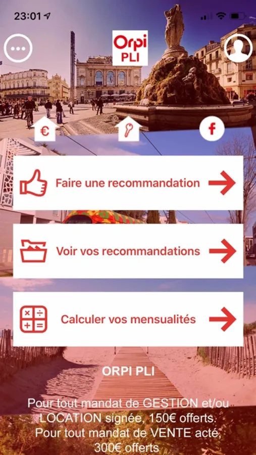 Grâce à l'application ORPI PLI vous allez à la fois pouvoir faire une recommandation d'un ami, voisin, famille, etc à l'agent immobilier de votre choix, mais également pouvoir calculer vos mensualités de remboursement de votre crédit immobilier.