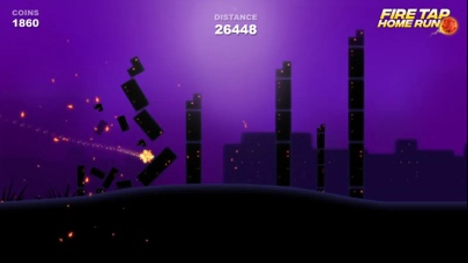 Unlock the various Fire ball to fly more and more far and destroy the far end dark land buildings. Tap or flick on screen three times while flying to hit and destroy far buildings. You will enjoy the Fire Tap Home Run game by hitting dark land building with nice graphics.