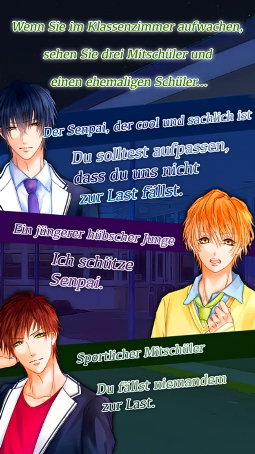 Wenn Sie im Klassenzimmer aufwachen, sehen Sie drei Mitschüler und einen ehemaligen Schüler...