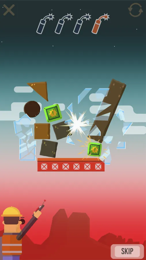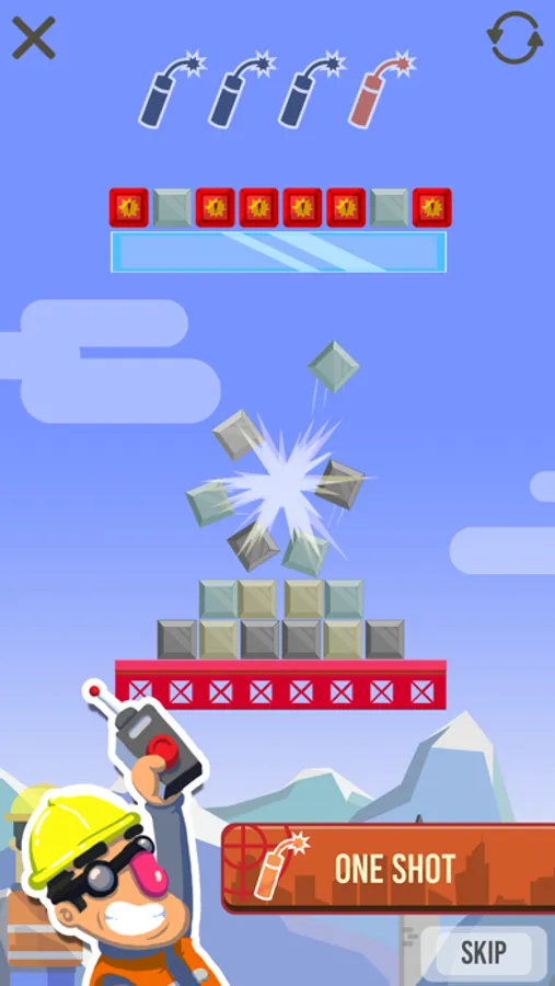 There are many materials to blow up; discover and master all the levels every one of them offers you a new challenge!
