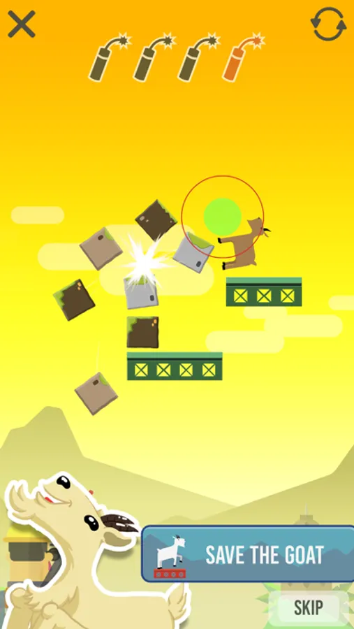 Hold your finger to charge the explosion, release it to ignite the blast, burst all the obstacles and clear the platforms. Your explosions can go from poof to kaboom, use just the exact force to knock everything down the platforms and clear the stages with 3 stars.