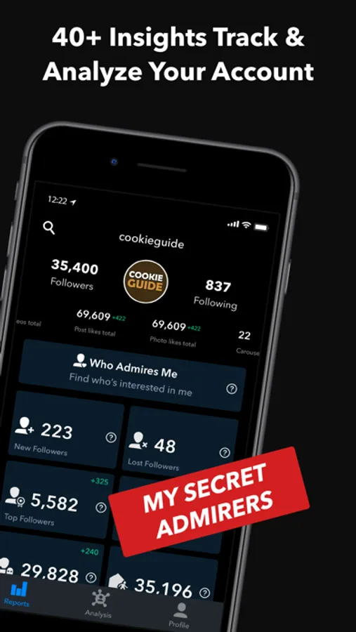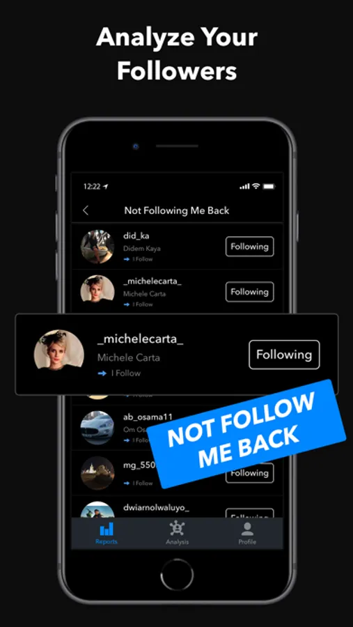 Track your Instagram followers, find out who unfollowed you on Instagram, who is not following you back, view your fans, find out users engagements with your posts and more...