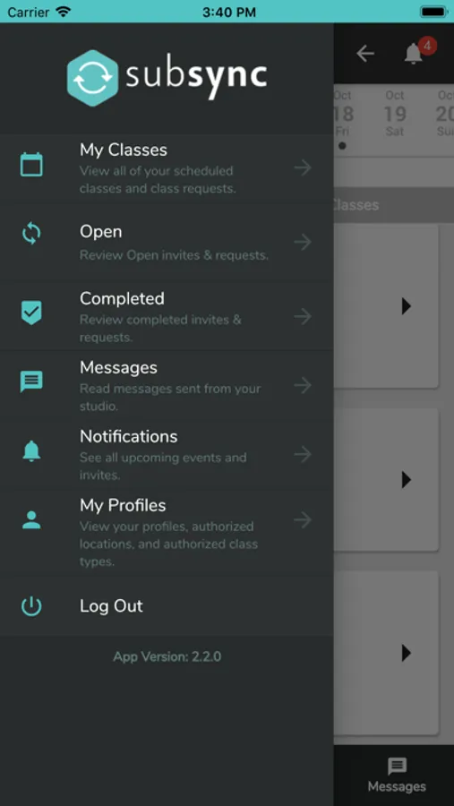 Subsync provides a mobile app for Mindbody teachers that lists all of their upcoming classes and allows them to easily submit a substitute request.
