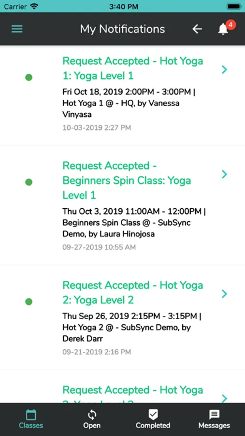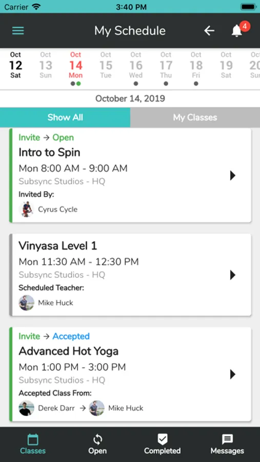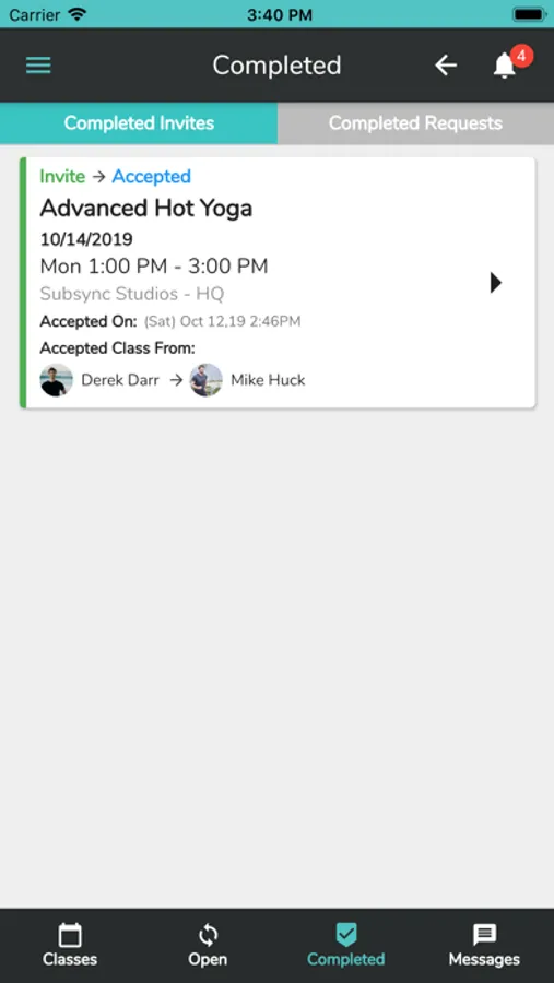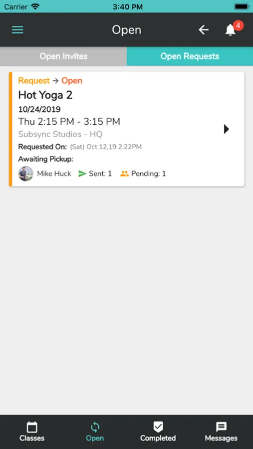 Other teachers certified to teach that style class can accept the request and Subsync automatically updates your MindBody schedule so everyone is instantly aware of the change.