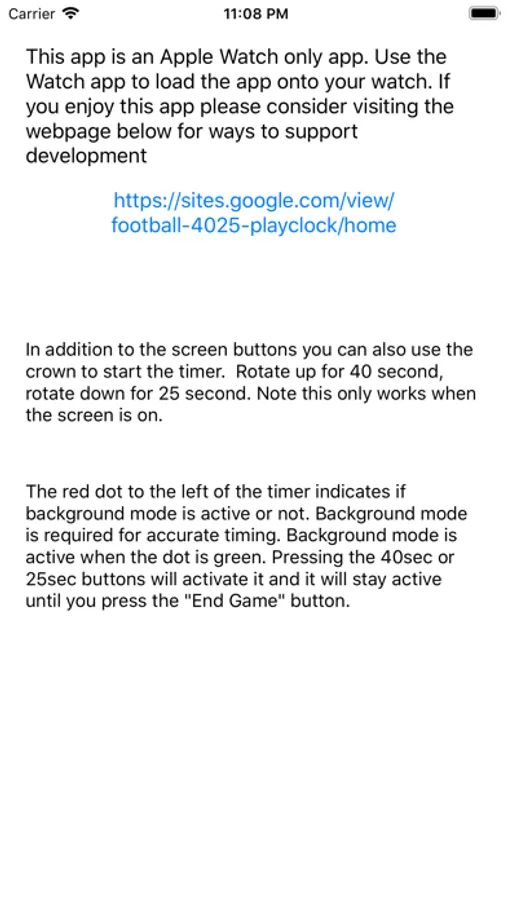 This app requires access to workout data in order to activate background mode to ensure accurate timing of the play clock. Background mode is automatically started when you push a button the first time, background mode is active when the square to the left of the timer is green. To turn off background mode press the end game button at the bottom of the app.