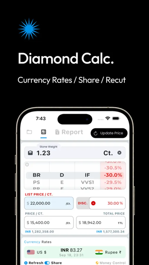 The best rated Diamond Rap value Calculator ( DRC ) with beautiful user interface and thoughtful user experience.
