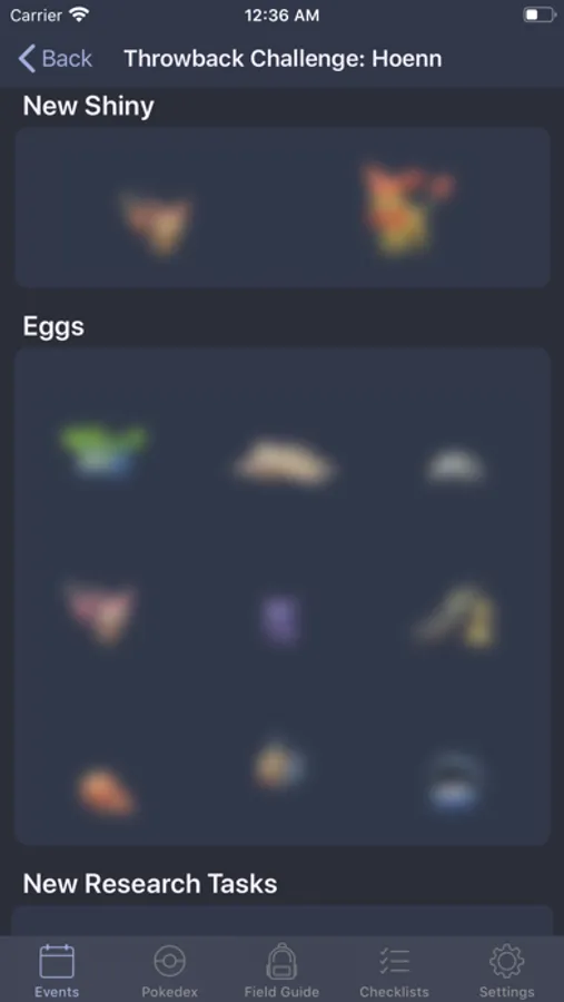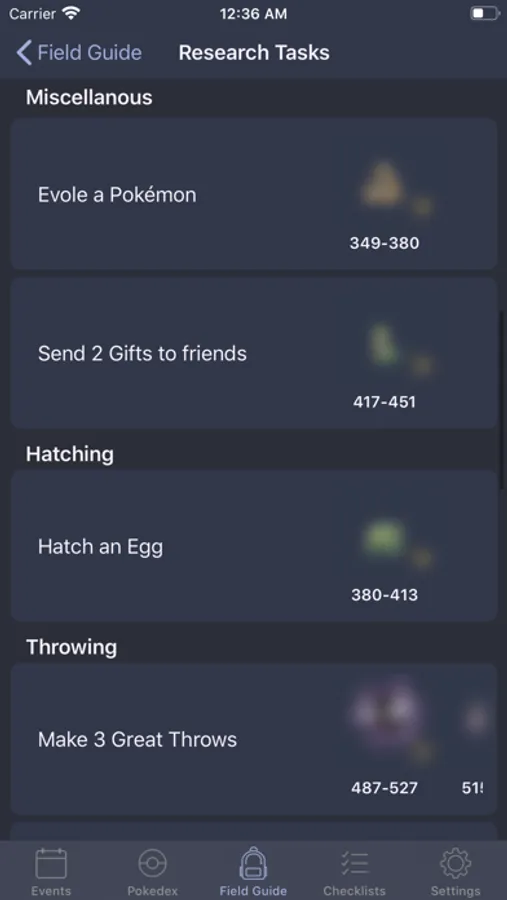 • Eggs: See what Pokemon can hatch from specific eggs, what is their CP range and if they can be shiny.
