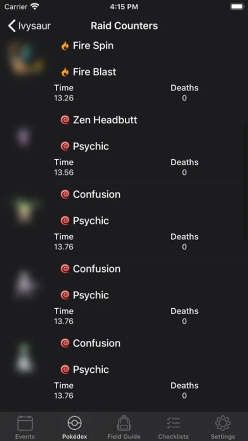 • Simulated Battles: Run a simulation for a Raid Boss to see a list of perfect counters and their best movesets.