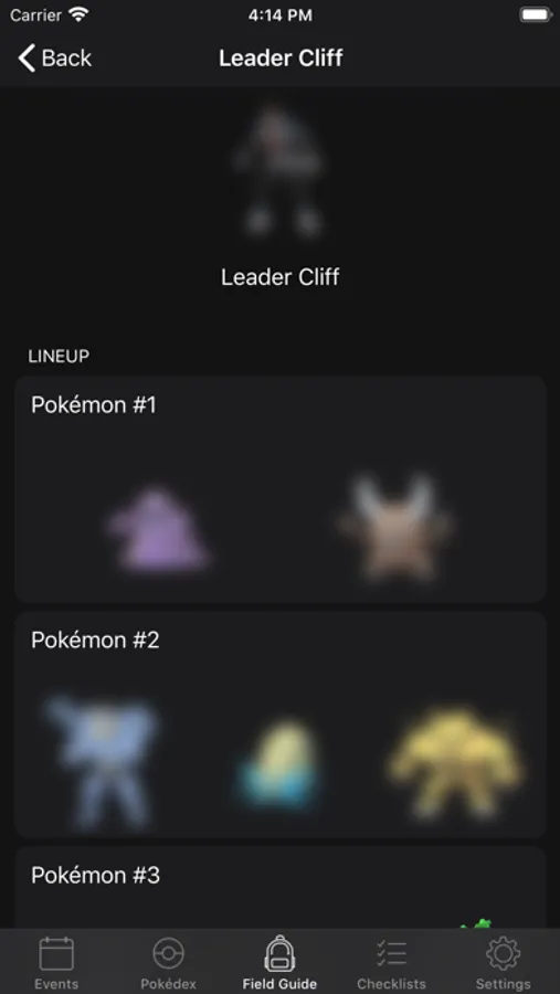 • Team GO Rocket: See what Pokemon are used by the different grunts and what shadow Pokemon you can catch after defeating them.