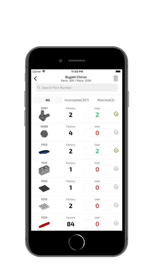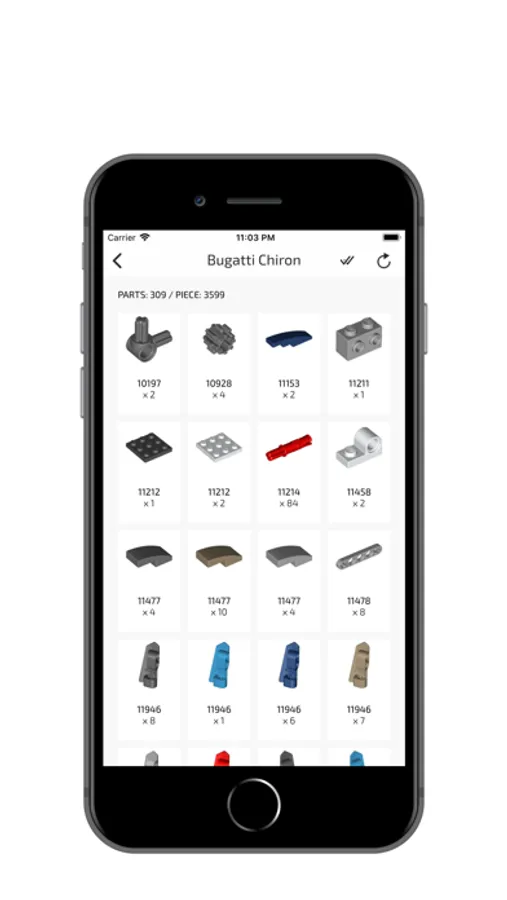 The checklist feature helps you keeping track of all your brick pieces.