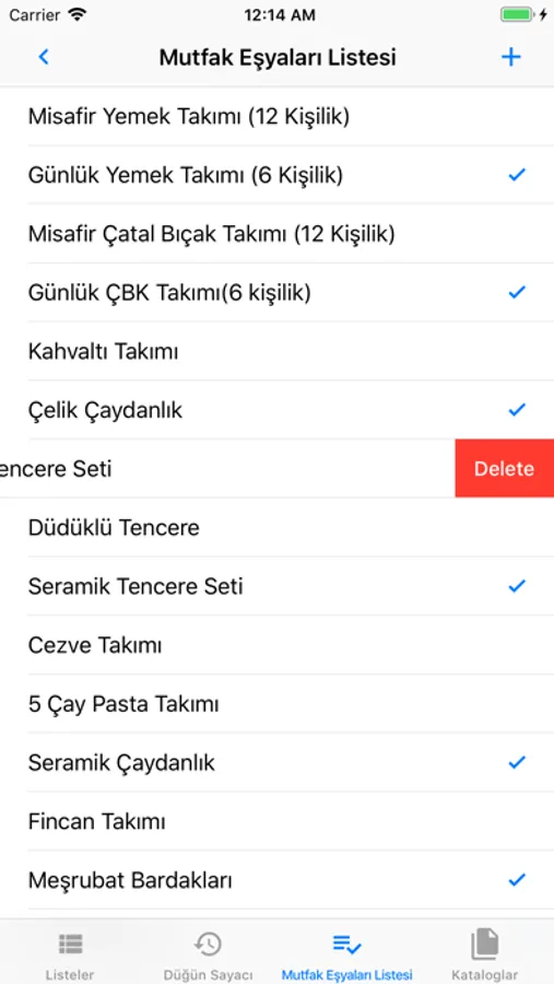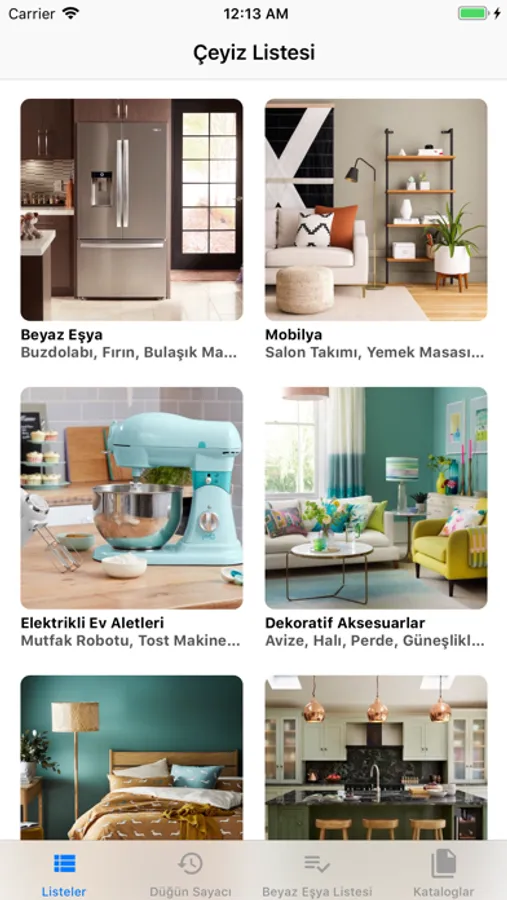 1. Çeyiz Listesi: Tüm düğün ihtiyaçları 8 ana başlık altında toplanmıştır. Listelere ekleme ya da çıkarma yaparak listeleri özelleştirebilirsiniz.