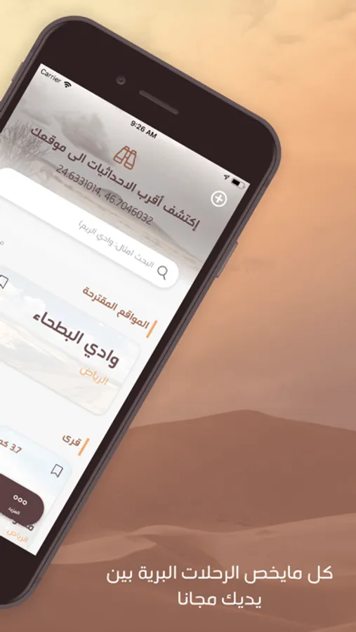 تطبيق دليلة البر هو التطبيق الافضل في الخليج لهواة البر و الرحلات البرية. التطبيق بكل بساطة يعتبر الصندوق الذهبي لكل هواة الرحلات البرية مع أكثر من ٢٠ ميزة توفِر لك بشكل مجاني خدمات لم تكن موجودة في تطبيق واحد من قبل. وطبعا افضل ما في الامر ان التطبيق بكل خدماته يعمل بشكل كامل بدون الوصول الى الانترنت و ١٠٠٪ مجاني.