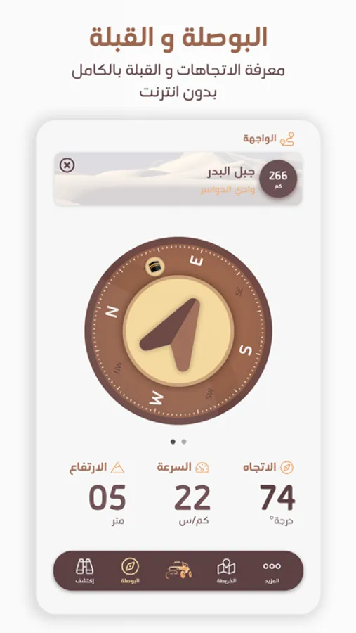 • البوصلة الاكثر دقة على الاطلاق تمكنك بكل سهولة من معرفة اتجاهات جميع المواقع المضافة.