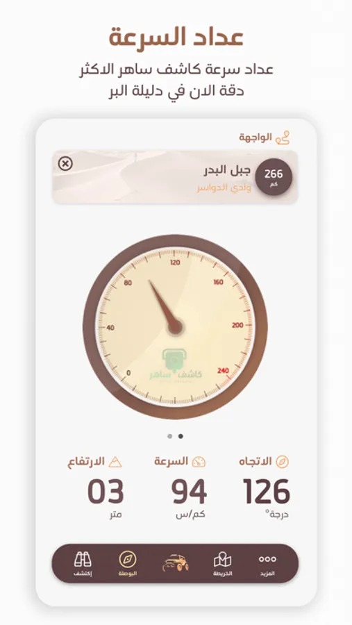 • لا يمكن ان يكون هناك بوصلة بدون عداد سرعة! لذلك عداد سرعة كاشف ساهر المتميز بالدقة الان في تطبيق دليلة البر.
